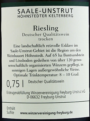 Abfüller: Winzervereinigung Freyburg-Unstrut eG, Querfurter Str. 10, D-06632 Freyburg