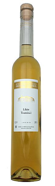 Dieser Likör wurde aus den Trauben der Weinsorte Traminer gewonnen.