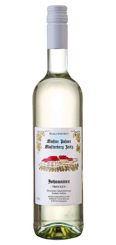 Die vom Staatlichen Weinbauinstitut Freiburg neu gezüchtete Rebsorte wurde mit dem Ziel entwickelt, eine krankheitsresistente Weißweinsorte zu erhalten, welche den Anforderungen des ökologischen Weinbaus entspricht. Durch die guten Abwehrmechanismen der Johanniter-Rebe kann auf den Einsatz von Pflanzenschutzmitteln fast ganz verzichtet werden. Als Vertreter dieser an Saale und Unstrut noch recht seltenen Rebsorte zeigt der Johanniter vom Weingut Schulze ein zart duftendes Bukett von reifen Birnen und frischen Limetten. Mit seinem würzigen Abgang stellt dieser saftige Wein einen wunderbaren Begleiter von frischen Salaten und delikaten Pilzgerichten dar.