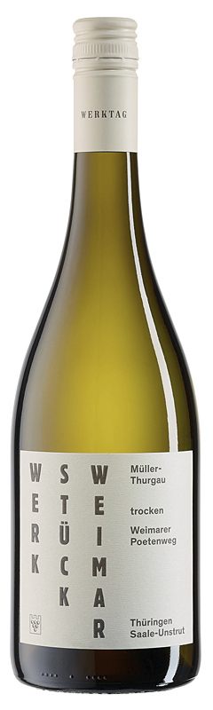 Unter der Dachmarke "Werkstück Weimar" vertreibt die Winzervereinigung Freyburg die sortenrein ausgebauten Weine aus dem Thüringer Teil des Anbaugebietes Saale-Unstrut rund um Weimar. Mit sehr guten klimatischen Bedingungen und einer optimalen Bodenbeschaffenheit bietet die Lage Weimarer Poetenweg ideale Voraussetzungen für eigenständige Weine mit besonderem Charakter. Der junge, fruchtige Wein begeistert mit einem eleganten Bukett mit klarer Fruchtnote und feiner Mineralik.